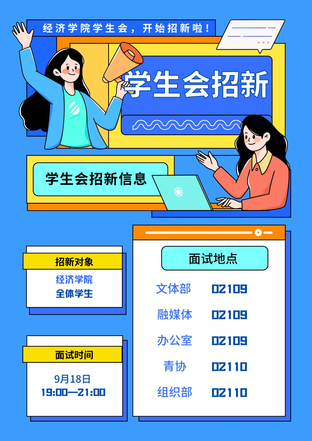 经济学院团总支学生会的招新面试马上就要开始了!没有交报名表的同学可直接带着报名表到相应教室进行面试。