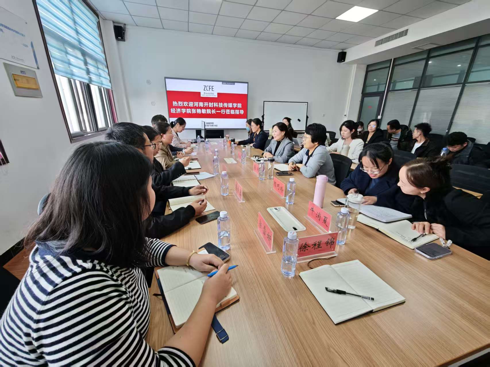 10月14日下午,我校经济学院由院长张艳敏、副院长陈俊颖、院长助理王慧芳带队,组织金融系、精算系及统计系负责人与骨干教师一行,专程赴郑州财经学院开展交流访谈。本次活动旨在通过实地走访其金融学院、统计与大数据学院,聚焦学科建设、人才培养、课程改革等关键议题,汲取先进办学经验,为我院相关专业的优化升级与高质量发展注入新动力。