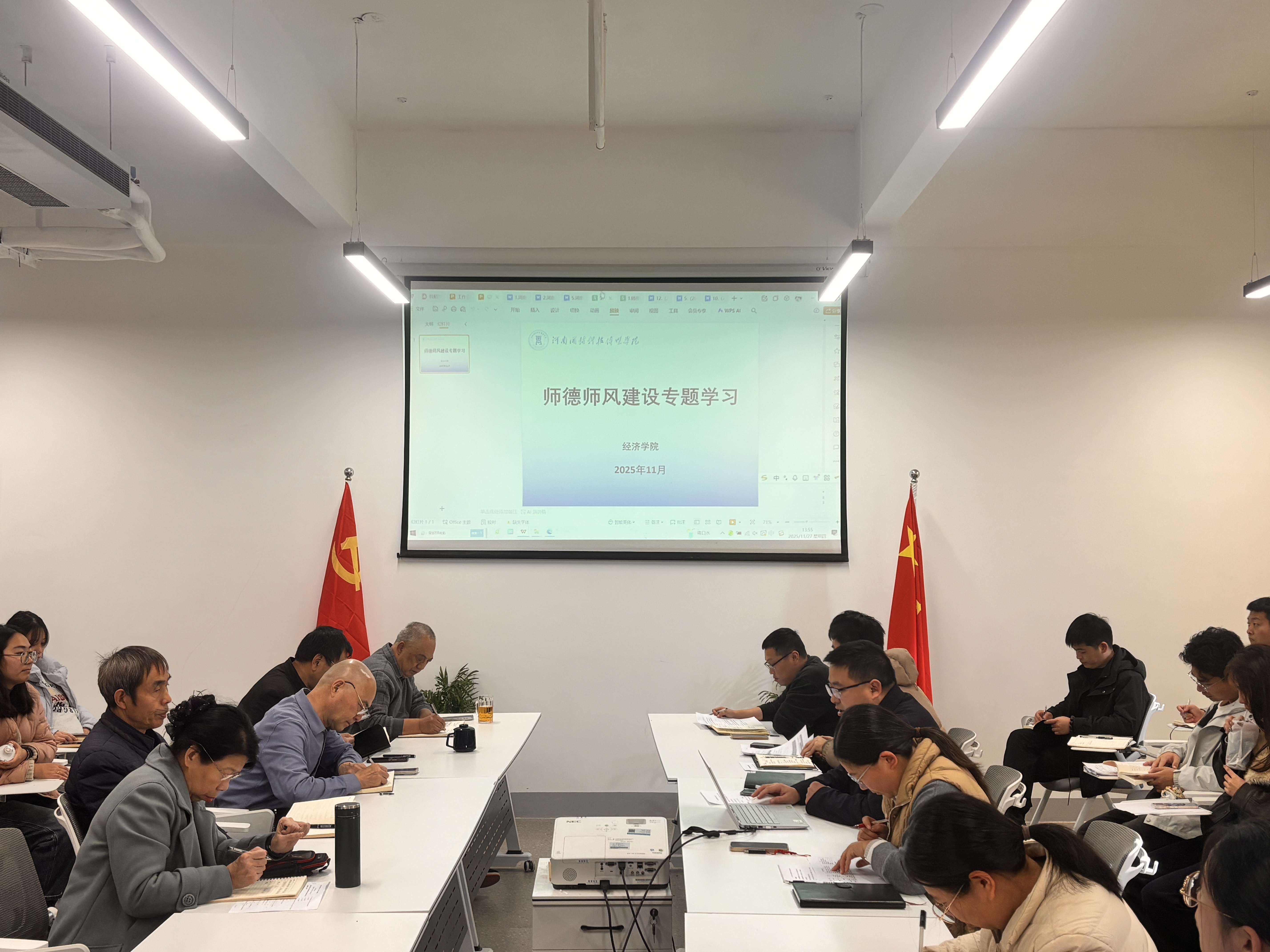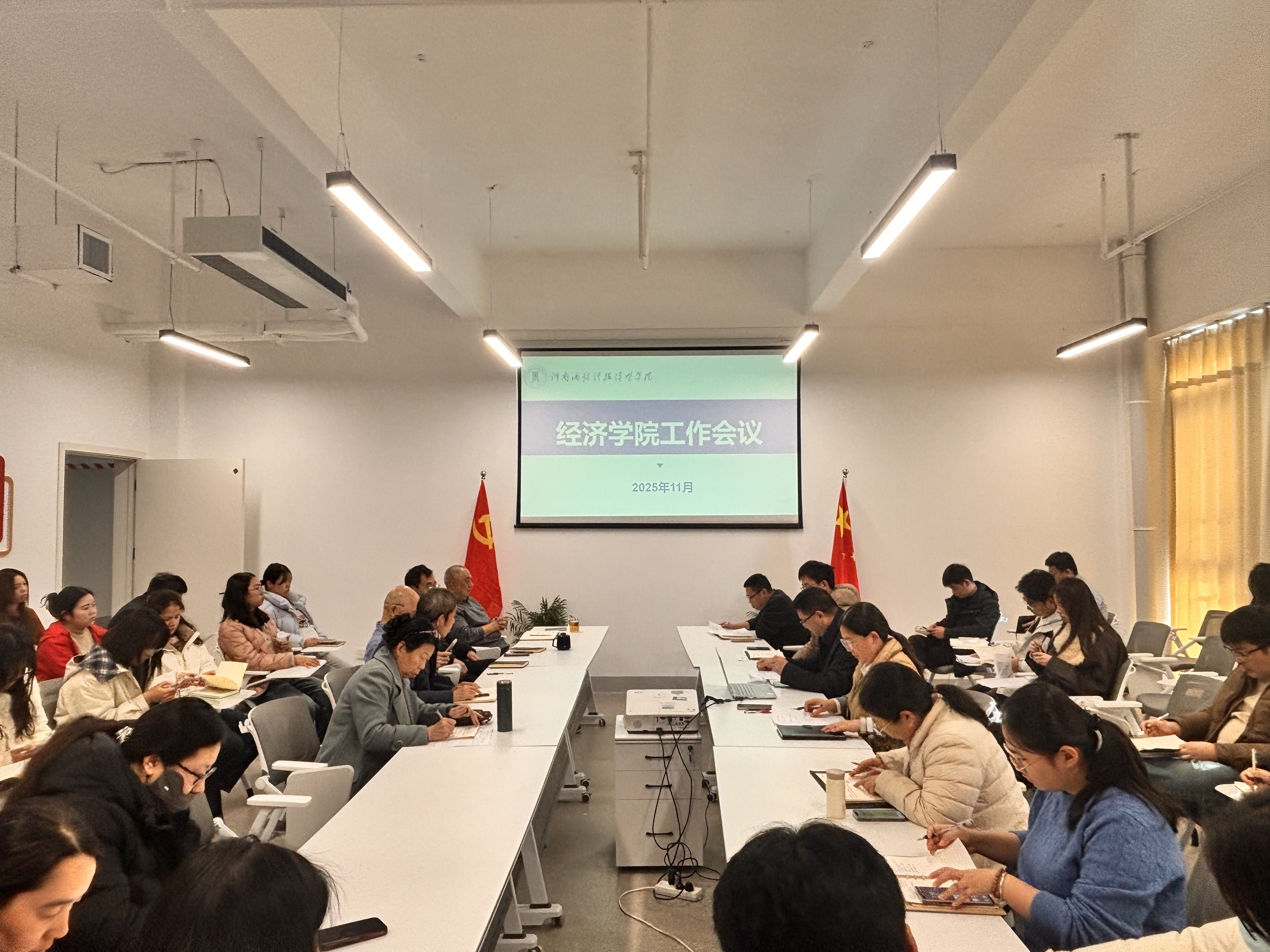 2025年11月27日下午,经济学院在至善楼02511会议室召开全体教职工工作会议。会议由学院党政办公室主任郑津主持,全院教职工参加了本次会议。